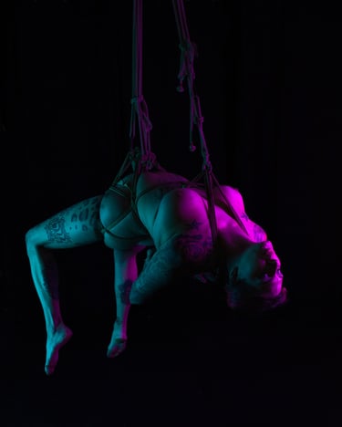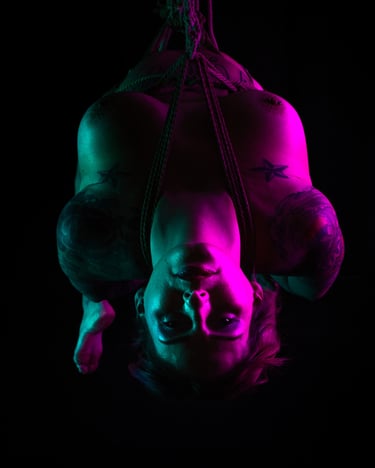 Shibari is a study in juxtaposition. The delicate interplay of restraint can lead to profound liberation where the vulnerability of being bound and on display collides with the freedom of the mind exploring the realms of subspace. As the lengths of rope tighten around the body and the fibers dig into flesh, what emerges is an unexpected feeling of freedom and pleasure.
